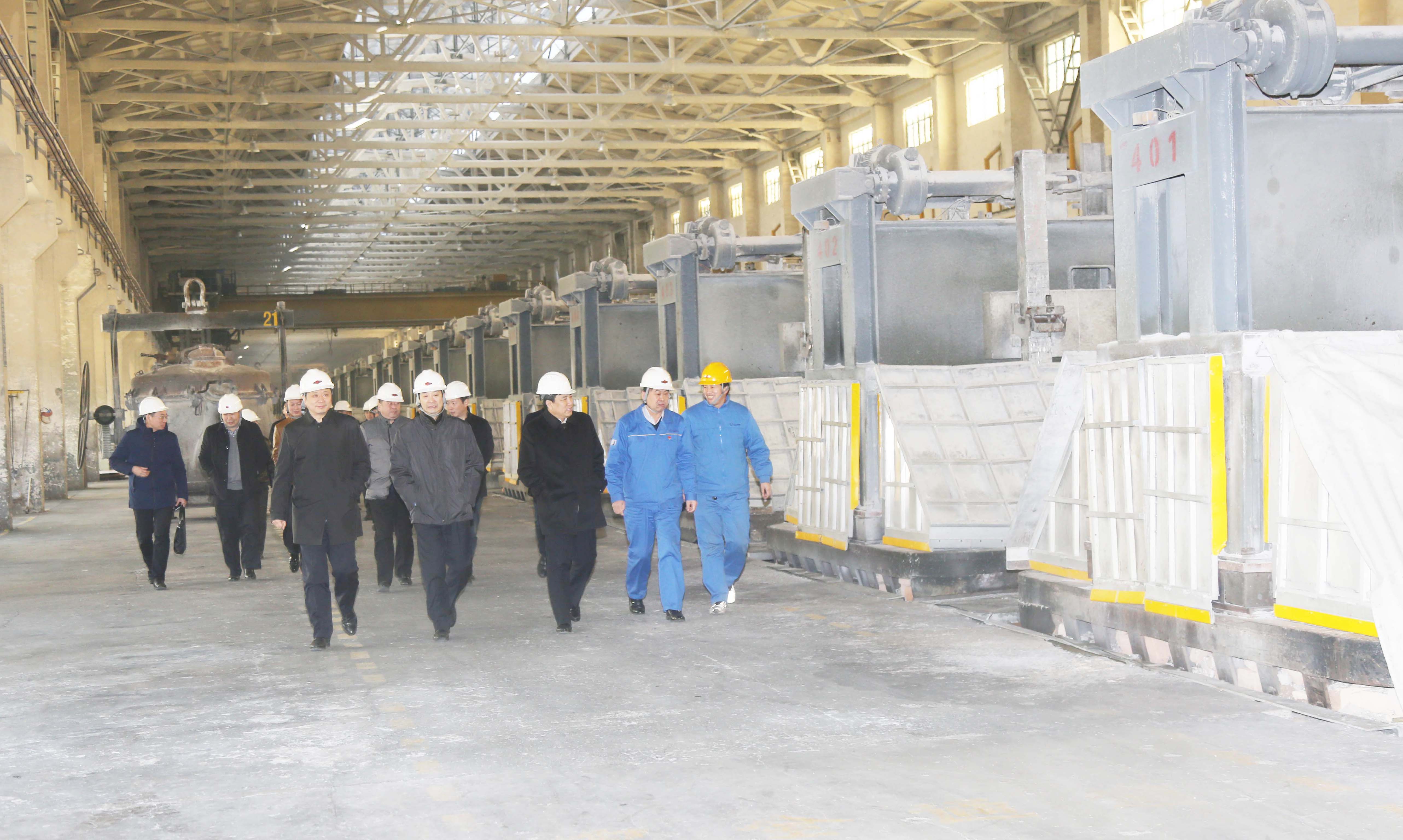 袁劍一行先后到萬基鋁業(yè)一公司炭素車間焙燒工段、電解車間,萬基炭素二公司焙燒車間,萬基鋁業(yè)二公司電解一車間,石墨公司機(jī)加工車間成品展示區(qū),萬基鋁加工冷軋車間、鋁箔車間、精整車間等處參觀。每到一處,考察團(tuán)一行都認(rèn)真聽取企業(yè)負(fù)責(zé)人介紹,詳細(xì)了解公司環(huán)保改造取得的成效。